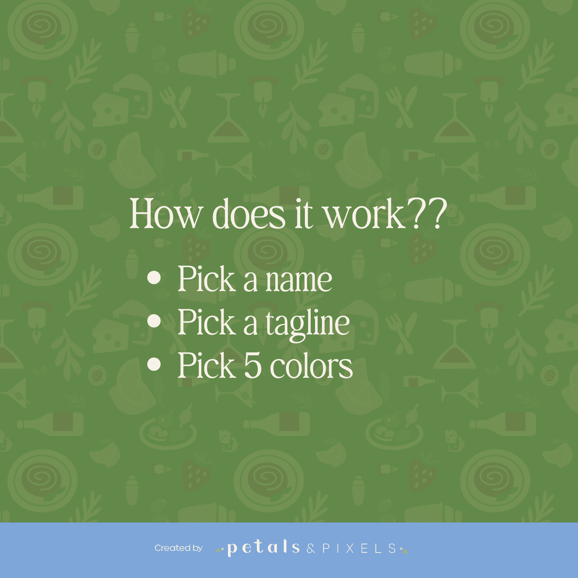 ✔ Branded patroon – perfect voor menukaarten, stickers of dozen